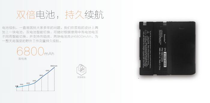 RTK模式12小时,可外接直流电,双电池电源自动切换 |
